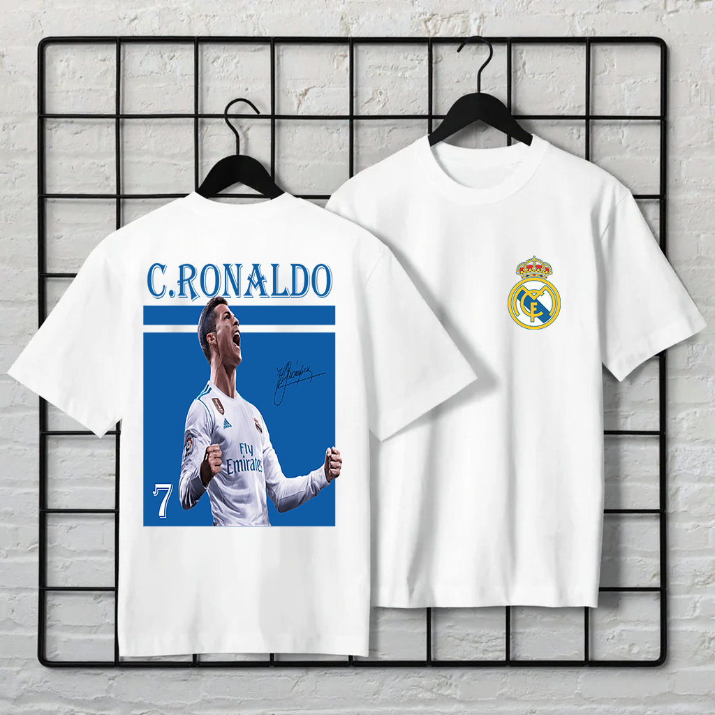 تيشيرت قطن 100% بجودة عالية، مزوّد بطباعة مميزة مستوحاة من أحد أعظم نجوم الكرة. تصميم عصري يجمع بين الأناقة والراحة، ومثالي للارتداء اليومي أو كهدية فريدة لمحبي اللعبة.